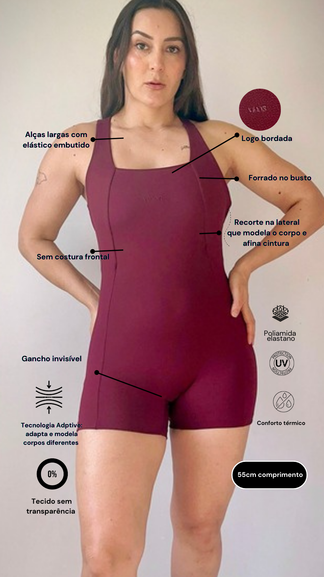 •  Modelagem: Alta compressão + recortes laterais que modelam a silhueta